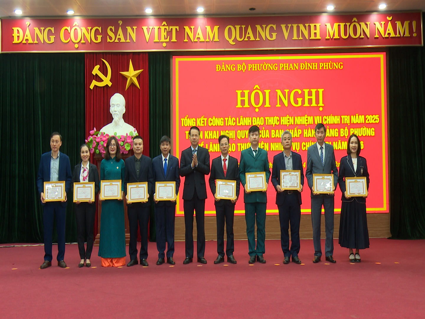 * Đối với Đảng bộ phường Phan Đình Phùng: năm 2025, 10/10 chỉ tiêu chủ yếu đều đạt và vượt kế hoạch, trong đó có 5 chỉ tiêu vượt mức kế hoạch đề ra. Nổi bật là: Tổng thu ngân sách nhà nước trên địa bàn đạt trên 2.382 tỷ đồng; tỷ lệ giải ngân vốn đầu tư công đạt trên 444 tỷ đồng, bằng 100% kế hoạch giao.