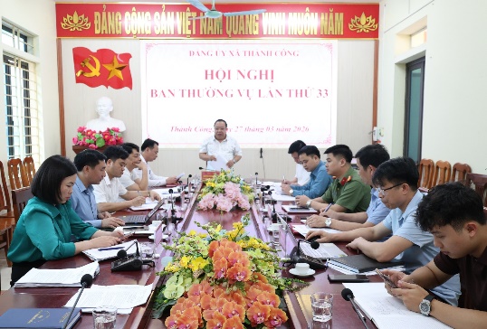* Tại Hội nghị Ban Thường vụ Đảng ủy xã Thành Công lần thứ 33, nhiệm kỳ 2025 - 2030, các đại biểu đã nghe báo và cho ý kiến vào dự thảo chương trình kỳ họp; các báo cáo, tờ trình dự kiến trình tại kỳ họp thứ Nhất của HĐND xã; công tác chuẩn bị nhân sự và các điều kiện bảo đảm phục vụ kỳ họp; báo cáo công tác thực hiện các dự án, quản lý tài nguyên đất đai trên địa bàn; công tác phát triển Đảng và một số nhiệm vụ quan trọng khác.