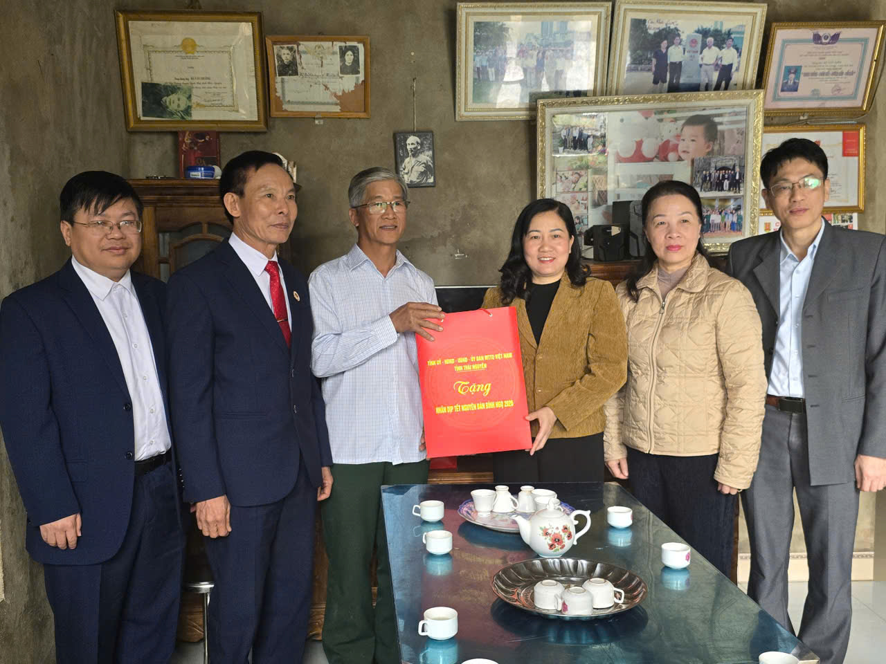 Nhân dịp này, Đoàn công tác đã đến thăm, tặng quà một số gia đình người có công với cách mạng, thân nhân liệt sĩ và người cao tuổi trên địa bàn xã, gồm: Ông Hà Văn Tiến (sinh năm 1962), thương binh 33%, trú tại xóm Coốc; ông Lương Văn Đào (sinh năm 1956), người hoạt động kháng chiến bị nhiễm chất độc hóa học 61%, trú tại xóm Lợi B; ông Ma Đức Thanh (sinh năm 1953), người hoạt động kháng chiến bị nhiễm chất độc hóa học 41%, trú tại xóm Làng Dạ; bà Đặng Thị Mùi (sinh năm 1923), người cao tuổi 103 tuổi, trú tại xóm Nà Lang.