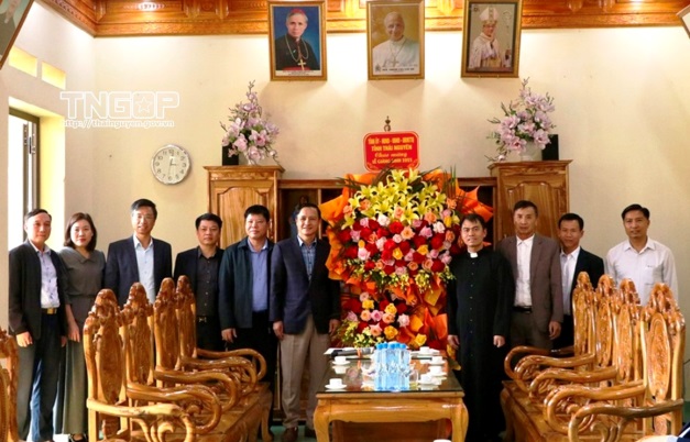 * Đoàn do đồng chí Vũ Duy Hoàng, Ủy viên Ban Thường vụ Tỉnh ủy, Phó Chủ tịch Thường trực Ủy ban MTTQ Việt Nam tỉnh làm Trưởng đoàn đến thăm, chúc mừng Giáo xứ Đại Từ và Linh mục Đinh Văn Thành, Chính xứ Giáo xứ Đại Từ, Quản hạt Thái Nguyên nhân dịp lễ Giáng sinh (ảnh: TNGOP).