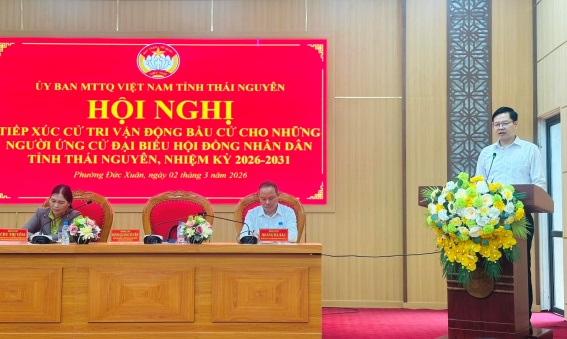 * Dự Hội nghị tiếp xúc cử tri tại phường Đức Xuân có đồng chí Đinh Quang Tuyên, Phó Bí thư Tỉnh ủy, Chủ tịch Ủy ban MTTQ tỉnh cùng các ứng cử viên đại biểu HĐND tỉnh Thái Nguyên nhiệm kỳ 2026 - 2031, thuộc đơn vị bầu cử số 22.
