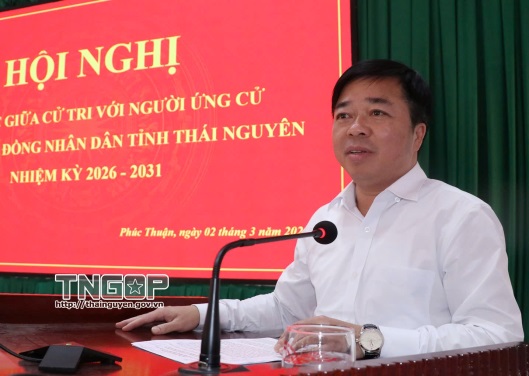 * Tại xã Phúc Thuận, các ứng cử viên đại biểu HĐND tỉnh Thái Nguyên, đơn vị bầu cử số 10, gồm các đồng chí: Bùi Văn Lương, Ủy viên Ban Thường vụ Tỉnh ủy, Phó Chủ tịch Thường trực UBND tỉnh; Bùi Đức Hải, Ủy viên Ban Thường vụ Tỉnh ủy, Giám đốc Công an tỉnh; Nông Thị Chinh, Tổ trưởng tổ chuyên môn, Trường Mầm non Tiên Phong 1, phường Vạn Xuân đã tham gia Hội nghị tiếp xúc cử tri.