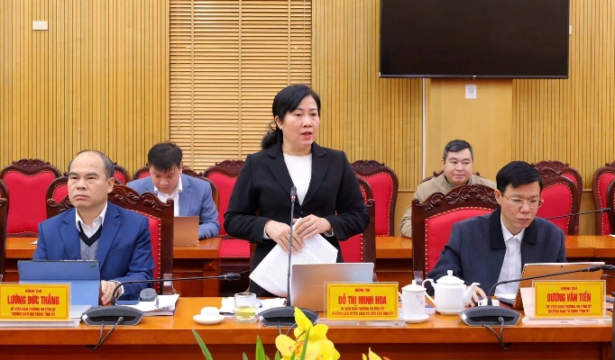 Đồng chí Đỗ Thị Minh Hoa, Ủy viên Ban Thường vụ, Trưởng ban Tuyên giáo và Dân vận Tỉnh ủy phát biểu tại Hội nghị