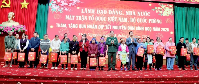 Trong chương trình, Đại tướng Phan Văn Giang và các đồng chí lãnh đạo Trung ương, lãnh đạo tỉnh Thái Nguyên đã trao quà cho các tập thể, đồng thời trực tiếp tặng quà cho 225 hộ nghèo, hộ cận nghèo, công nhân lao động có hoàn cảnh khó khăn và người có công với cách mạng trên địa bàn tỉnh. Đây là hoạt động ý nghĩa thể hiện sự quan tâm sâu sắc của Đảng, Nhà nước và Quân đội đối với công tác chăm lo đời sống nhân dân mỗi dịp Tết đến, Xuân về.