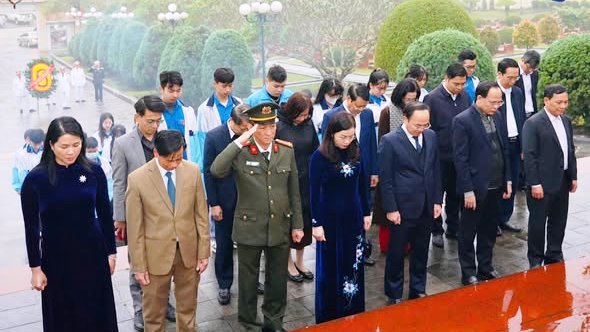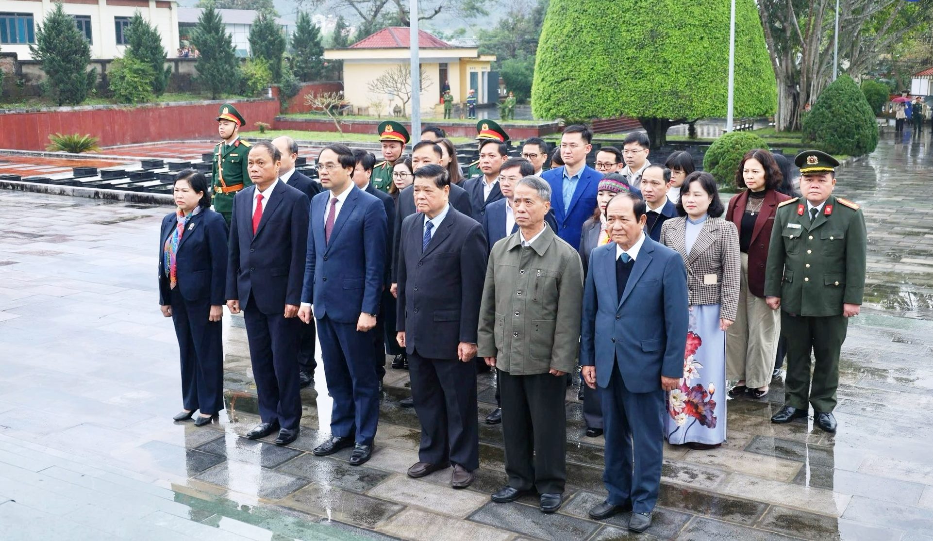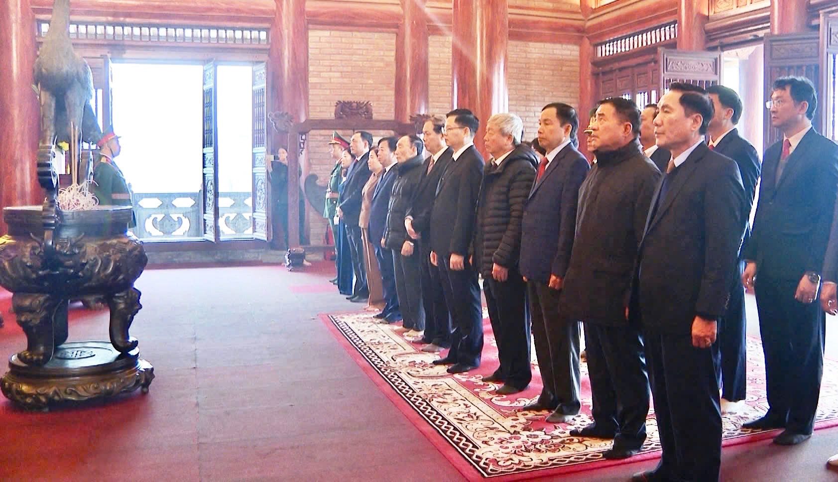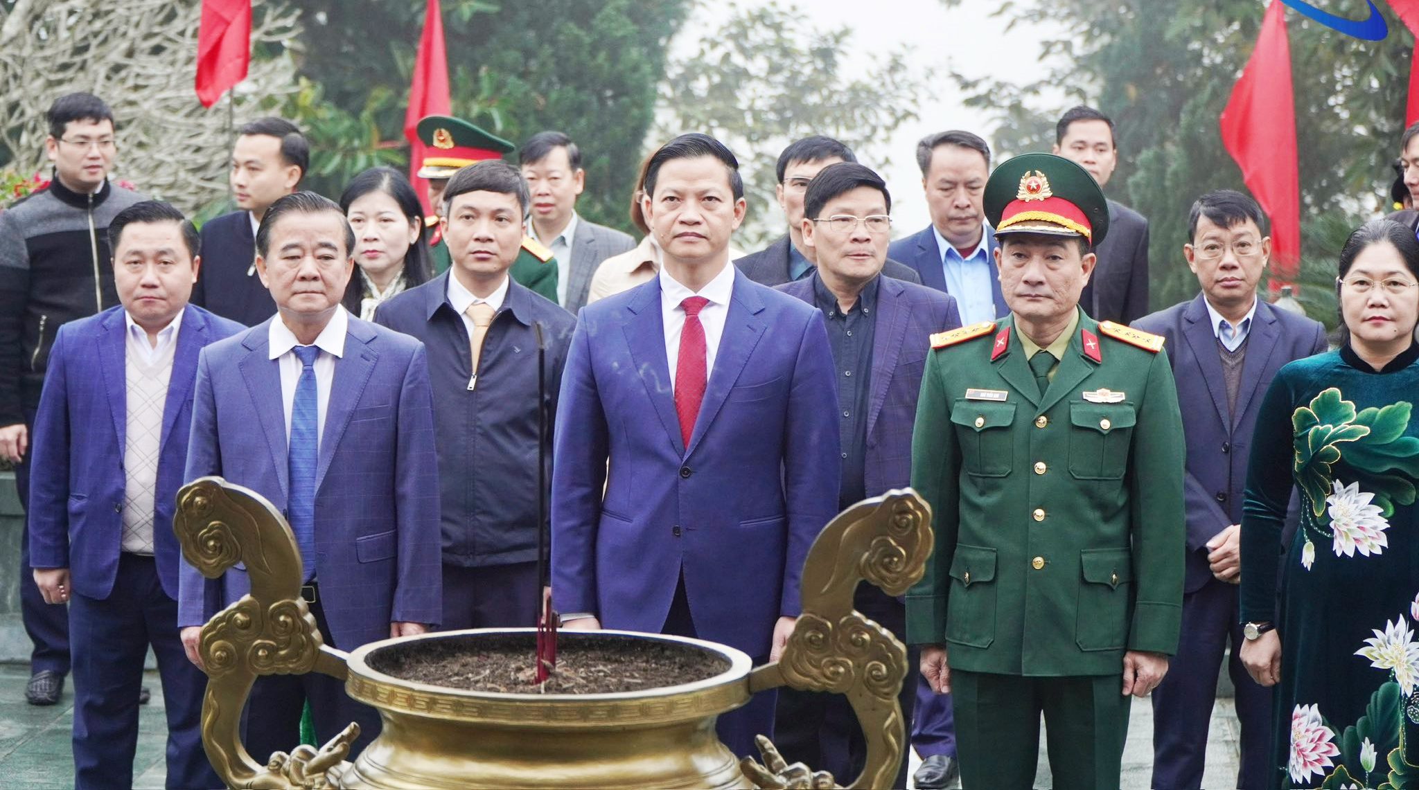 Các đồng chí Bí thư Tỉnh ủy và Chủ tịch UBND tỉnh dâng hương tưởng niệm các anh hùng liệt sĩ