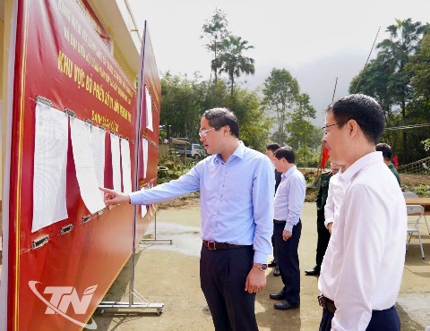 Đồng chí Bí thư Tỉnh ủy kiểm tra công tác chuẩn bị bầu cử tại Khu vực bỏ phiếu số 14, xóm Na Rang, xã Nghinh Tường