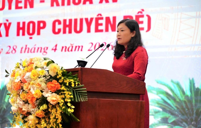Đồng chí Mai Thị Thúy Nga, Phó Chủ tịch HĐND tỉnh điều hành nội dung thảo luận và thông qua các nghị quyết tại kỳ họp