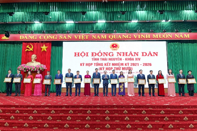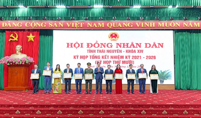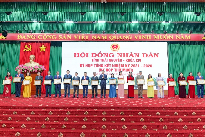 Nhân dịp này, HĐND tỉnh đã tổ chức biểu dương, khen thưởng các tập thể, cá nhân có thành tích xuất sắc; ghi nhận những đóng góp tâm huyết, trách nhiệm đối với hoạt động của HĐND tỉnh Thái Nguyên khóa XIV, nhiệm kỳ 2021 - 2026.