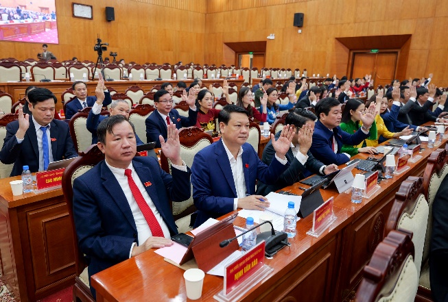 Các đại biểu biểu quyết thông qua dự thảo Nghị quyết