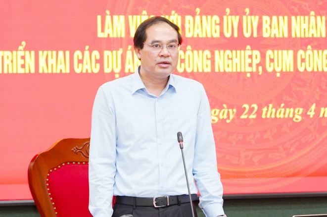 Phát biểu kết luận buổi làm việc, đồng chí Bí thư Tỉnh ủy yêu cầu Đảng ủy UBND tỉnh chỉ đạo UBND tỉnh, các sở, ngành liên quan rà soát, lập danh mục và đề xuất đầu tư các khu, cụm công nghiệp theo lộ trình phù hợp với mục tiêu tổng thể phát triển kinh tế - xã hội của tỉnh. Các cấp ủy và tổ chức chính trị - xã hội cần vào cuộc quyết liệt, đồng bộ trong công tác bồi thường, hỗ trợ, tái định cư - đẩy mạnh tuyên truyền, vận động, tạo sự đồng thuận của người dân; kịp thời xử lý các trường hợp vi phạm theo quy định. Tăng cường xúc tiến đầu tư, xác định mục tiêu thu hút đầu tư của từng năm để phân công nhiệm vụ cho từng sở, ngành tham mưu giải pháp thực hiện.