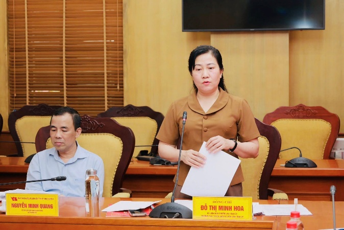 Đồng chí Đỗ Thị Minh Hoa báo cáo về những nhiệm vụ trọng tâm năm 2026