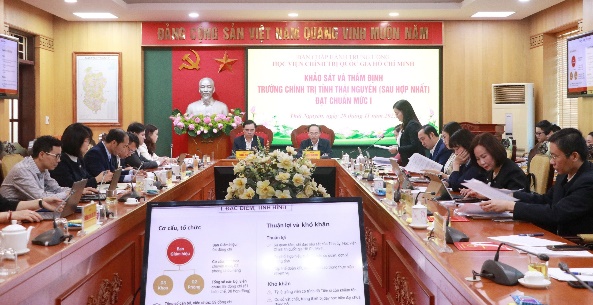 Ghi nhận, đánh giá cao tinh thần chủ động, nỗ lực của Trường Chính trị tỉnh trong việc duy trì và thực hiện tốt các chỉ tiêu của Trường chuẩn mức độ I, sau trao đổi, với tinh thần trách nhiệm, làm việc công tâm, khách quan, đúng quy định, căn cứ kết quả khảo sát, thẩm định, đánh giá các tiêu chí, Hội đồng thẩm định tiến hành bỏ phiếu với kết quả 100% thống nhất công nhận Trường Chính trị tỉnh Thái Nguyên (sau hợp nhất) đạt chuẩn mức I theo Quy định số 11-QĐ/TW ngày 19/5/2021 của Ban Bí thư.