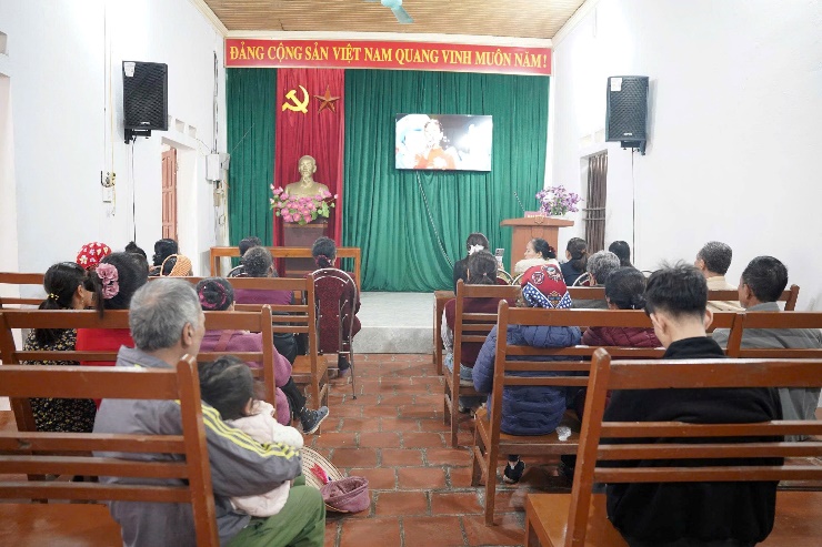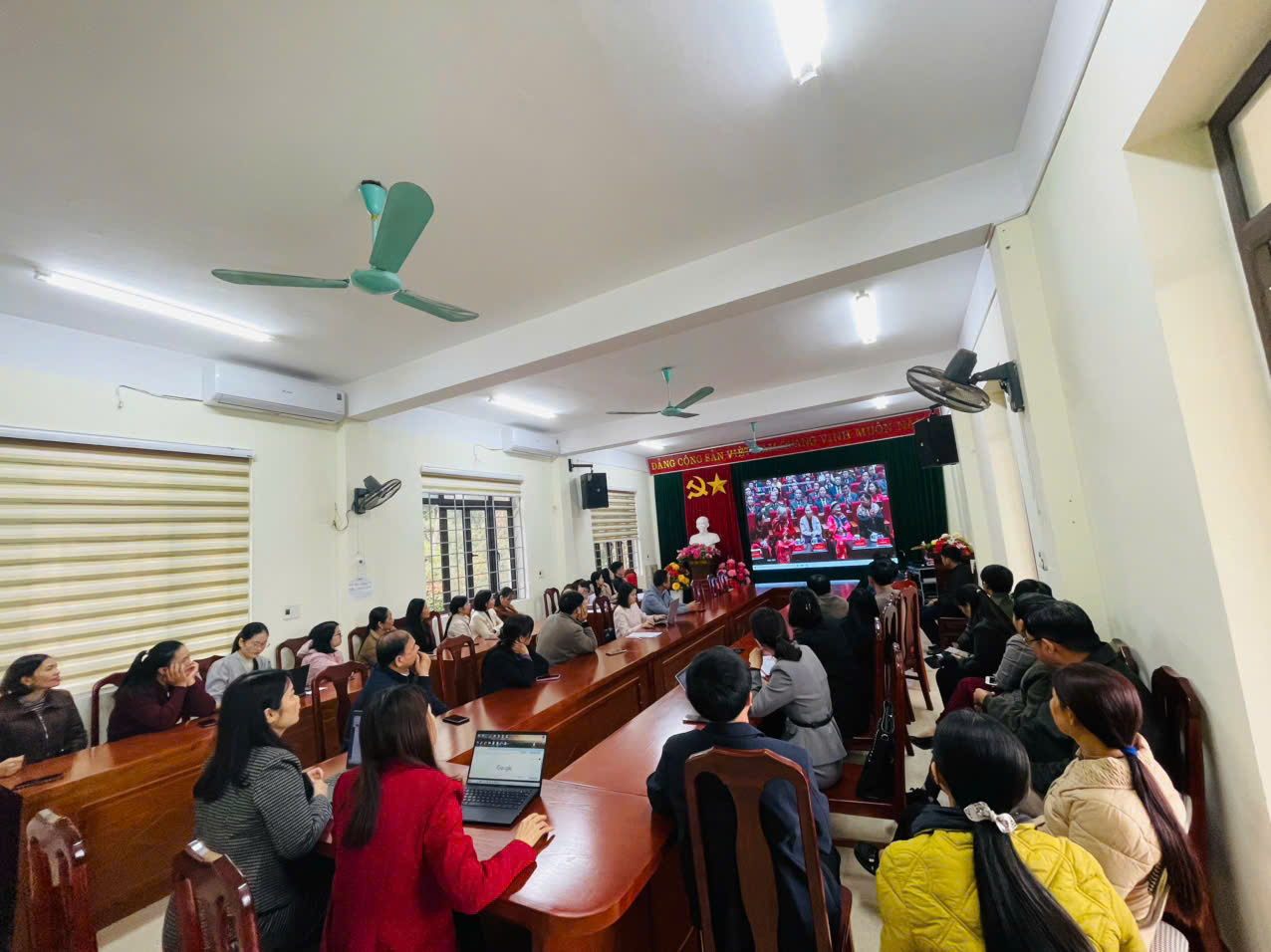 Cán bộ, đảng viên Đảng bộ xã Thành Công theo dõi truyền hình trực tiếp Phiên khai mạc Đại hội