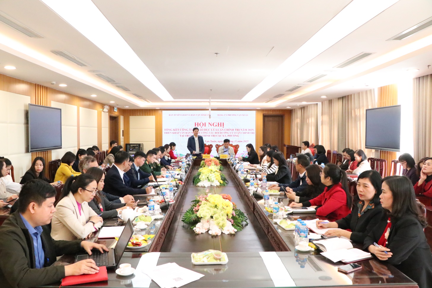 Dự hội nghị có đại diện lãnh đạo các cơ quan: Ban Tuyên giáo và Dân vận Tỉnh ủy, Ban Tổ chức Tỉnh ủy, Trường Chính trị tỉnh, Sở Tài chính, Đảng ủy phường Vạn Xuân; đại biểu ban tuyên giáo và dân vận các đảng ủy trực thuộc Tỉnh ủy và trung tâm chính trị các xã, phường trên địa bàn tỉnh.