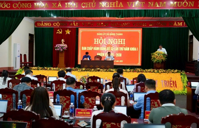 * Tại Hội nghị Ban Chấp hành Đảng bộ xã Bằng Thành lần thứ năm (mở rộng) khóa I, nhiệm kỳ 2025 - 2030, các đại biểu đã nghe và thảo luận các báo cáo, dự thảo quan trọng liên quan đến kết quả thực hiện nhiệm vụ quý I, phương hướng quý II năm 2026; công tác lãnh đạo, chỉ đạo của cấp ủy; công tác nội chính, phòng, chống tham nhũng, lãng phí và cải cách tư pháp. Đồng thời, hội nghị xem xét các dự thảo chỉ thị, nghị quyết về phát triển kinh tế - xã hội, giảm nghèo bền vững, xây dựng nông thôn mới, phát triển nông nghiệp hàng hóa, nâng cao chất lượng giáo dục, y tế và nguồn nhân lực.