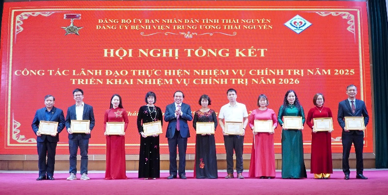 * Tại Hội nghị tổng kết công tác lãnh đạo thực hiện nhiệm vụ chính trị năm 2025, triển khai nhiệm vụ chính trị năm 2026 của Đảng bộ Bệnh viện Trung ương Thái Nguyên nêu rõ: Năm 2025, dưới sự lãnh đạo của Đảng ủy, Bệnh viện đạt nhiều kết quả nổi bật: các chỉ tiêu khám, chữa bệnh tăng trưởng rõ rệt; làm chủ nhiều kỹ thuật y tế chuyên sâu; đưa Trung tâm Hồi sức tích cực - Chống độc và Đơn vị phát hiện sớm ung thư vào hoạt động; đẩy mạnh chuyển đổi số, nâng cao chất lượng quản trị và phục vụ người bệnh.