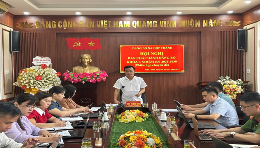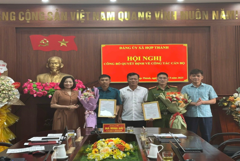 Tại Hội nghị, đã công bố Quyết định số 381-QĐ/TU, ngày 28/8/2025 của Ban Thường vụ Tỉnh uỷ về công tác cán bộ, chuẩn y kết quả bầu Uỷ viên Ban Thường vụ Đảng uỷ xã Hợp Thành, nhiệm kỳ 2025 - 2030 đối với đồng chí Hà Văn Phi, Uỷ viên Ban Chấp hành Đảng bộ, Trưởng Công an xã và đồng chí Nguyễn Công Huân, Uỷ viên Ban Chấp hành Đảng bộ, Chỉ huy trưởng Ban Chỉ huy Quân sự xã.