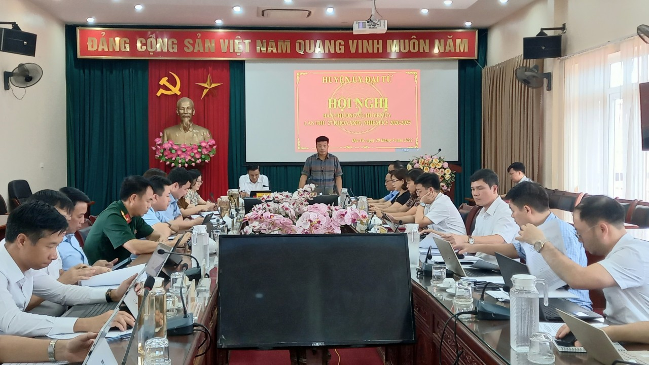 Trong 9 tháng năm 2022, cấp ủy huyện đã tập trung lãnh đạo, chỉ đạo thực hiện đồng bộ, toàn diện các nhiệm vụ phát triển kinh tế - xã hội, quốc phòng - an ninh và xây dựng hệ thống chính trị đảm bảo theo đúng kế hoạch đề ra; đồng thời giải quyết tốt các nhiệm vụ phát sinh. Trong đó, tập trung chỉ đạo thực hiện nhiệm vụ xây dựng nông thôn mới theo kế hoạch; lập và điều chỉnh các quy hoạch; đẩy nhanh tiến độ thu ngân sách; công tác giải phóng mặt bằng thực hiện các dự án trọng điểm trên địa bàn; hoàn thiện các nội dung để thực hiện chủ trương sáp nhập xã Quân Chu và thị trấn Quân Chu; tổ chức thành công Lễ kỷ niệm 100 năm huyện Đại Từ hình thành và phát triển…Kết quả một số chỉ tiêu chủ yếu như: Sản lượng lương thực ước đạt trên 750 nghìn tấn, đạt 100% kế hoạch năm; sản lượng chè búp tươi ước đạt 68 nghìn tấn, đạt 89,5% kế hoạch năm; giá trị sản xuất công nghiệp địa phương ước đạt trên 7 nghìn tỷ đồng, bằng 71,3% kế hoạch năm; thu cân đối ngân sách đạt trên 256 tỷ đồng, đạt 47,1% kế hoạch. Công tác an sinh xã hội, chăm sóc sức khỏe nhân dân được duy trì ổn định; an ninh chính trị, trật tự an toàn xã hội cơ bản được giữ vững. Công tác xây dựng Đảng và hệ thống chính trị được thực hiện thường xuyên và đạt kết quả tích cực; kết nạp 145 đảng viên mới…