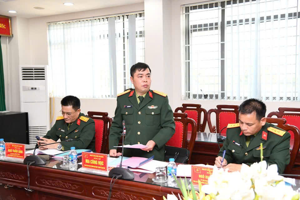 Đại tá Ma Công Học, Tỉnh ủy viên, Phó Bí thư Thường trực Đảng ủy Quân sự tỉnh, Chính ủy Bộ CHQS tỉnh phát biểu tại Hội nghị