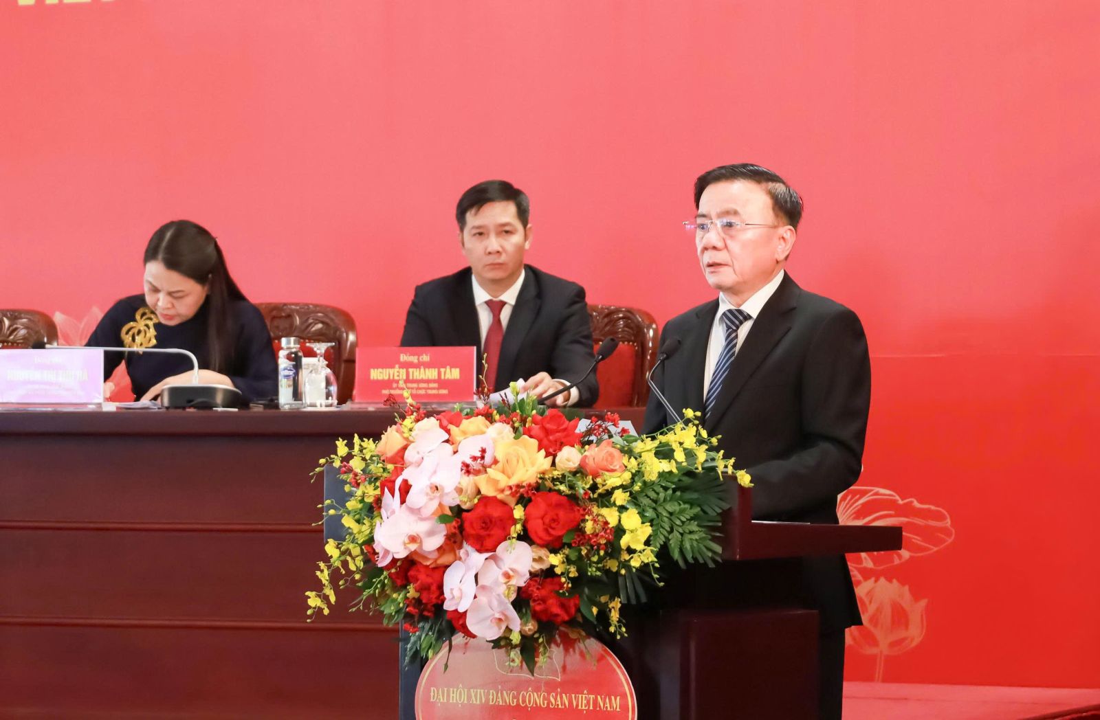 Cùng chủ trì họp báo có các đồng chí: Nguyễn Xuân Thắng, Ủy viên Bộ Chính trị, Giám đốc Học viện Chính trị quốc gia Hồ Chí Minh, Chủ tịch Hội đồng Lý luận Trung ương; Trịnh Văn Quyết, Bí thư Trung ương Đảng, Trưởng Ban Tuyên giáo và Dân vận Trung ương; Lê Hoài Trung, Bí thư Trung ương Đảng, Bộ trưởng Bộ Ngoại giao; Lại Xuân Môn, Ủy viên Trung ương Đảng, Phó Trưởng Ban Thường trực Ban Tuyên giáo và Dân vận Trung ương, Giám đốc Trung tâm Báo chí Đại hội XIV của Đảng; Nguyễn Thị Thu Hà, Ủy viên Trung ương Đảng, Phó Chánh Văn phòng Thường trực Văn phòng Trung ương Đảng; Nguyễn Thành Tâm, Ủy viên Trung ương Đảng, Phó Trưởng Ban Tổ chức Trung ương; Lâm Thị Phương Thanh, Ủy viên Trung ương Đảng, Thứ trưởng Thường trực Bộ Văn hóa, Thể thao và Du lịch; Hà Quốc Trị, Phó Chủ nhiệm Ủy ban Kiểm tra Trung ương.
