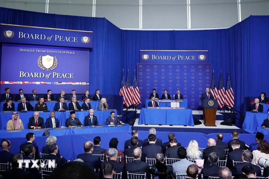 Ngày 19/02, nhận lời mời của Tổng thống Mỹ Donald Trump, Chủ tịch Hội đồng Hoà bình về Dải Gaza, Tổng Bí thư Tô Lâm đã tham dự cuộc họp khai mạc Hội đồng. Tham dự cuộc họp, có nguyên thủ và lãnh đạo của hơn 50 quốc gia, là các nước thành viên sáng lập và quan sát viên của Hội đồng Hòa bình. Tổng thống Trump đánh giá cao việc Tổng Bí thư Tô Lâm tham dự Hội nghị, khẳng định dành sự tôn trọng sâu sắc đối với Việt Nam, một đất nước đáng ngưỡng mộ, với vai trò và ảnh hưởng ngày càng lớn. (Ảnh: TTXVN)