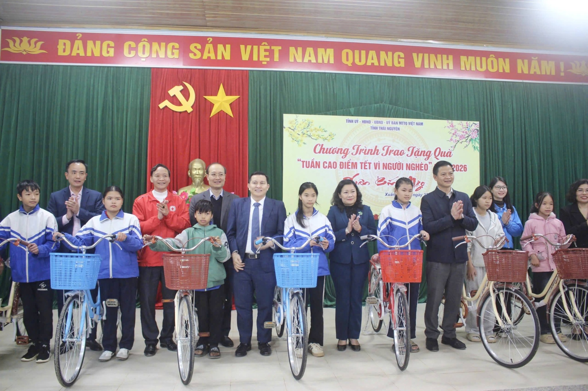 Dịp này, Đoàn công tác trao tặng 60 suất quà cho 60 hộ nghèo, hộ cận nghèo, mỗi suất trị giá 1,2 triệu đồng; trao tặng 15 em học sinh thuộc hộ nghèo, cận nghèo đang học tại Trường Phổ thông Dân tộc bán trú THCS Thần Sa và Thượng Nung 15 xe đạp.