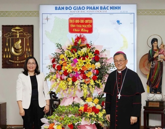 * Đoàn do đồng chí Trần Thị Lộc, Ủy viên Ban Thường vụ Tỉnh ủy, Phó Chủ tịch HĐND tỉnh làm Trưởng đoàn đến thăm, chúc mừng Tòa Giám mục Bắc Ninh và Giám mục Đỗ Quang Khang, Giám mục Giáo phận Bắc Ninh tại phường Kinh Bắc, tỉnh Bắc Ninh.