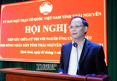 * Tại xã Định Hoá, các ứng cử viên đại biểu HĐND tỉnh Thái Nguyên, đơn vị bầu cử số 18, gồm các đồng chí: Nguyễn Linh, Ủy viên Ban Thường vụ Tỉnh ủy, Phó Chủ tịch UBND tỉnh; Nguyễn Quang Khải, Ủy viên Ban Chấp hành Đảng bộ HĐND tỉnh, Phó Chánh Văn phòng Đoàn ĐBQH và HĐND tỉnh; Hoàng Thị Ánh Tuyết, Chuyên viên Ủy ban MTTQ xã Yên Trạch đã tham gia Hội nghị tiếp xúc cử tri.