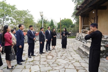 Đồng chí Bí thư Tỉnh ủy cùng Đoàn công tác đã tham quan và nghe giới thiệu về các không gian trưng bày chuyên đề, không gian văn hóa tại Bảo tàng Văn hóa các dân tộc Việt Nam.