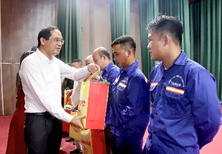 Đồng chí Bí thư Tỉnh ủy Trịnh Xuân Trường trao quà cho công nhân, người lao động có hoàn cảnh khó khăn