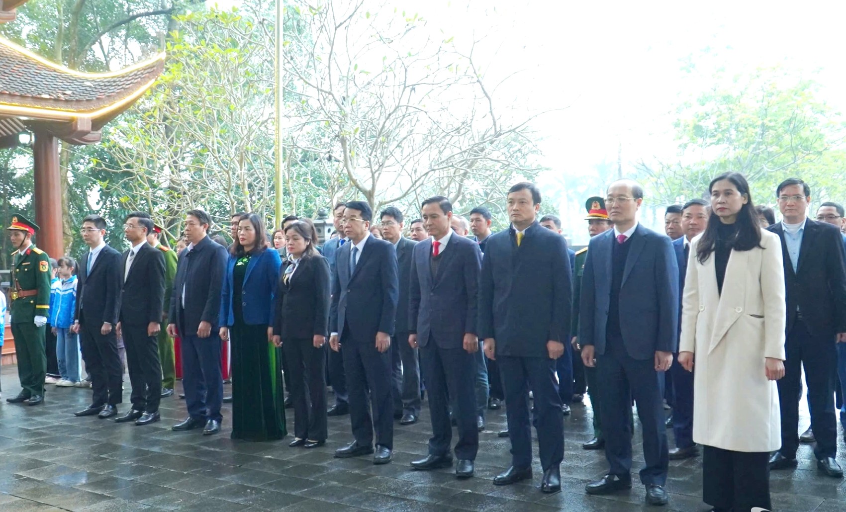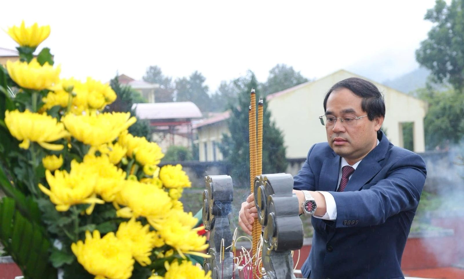 Các đồng chí Bí thư Tỉnh ủy và Chủ tịch UBND tỉnh dâng hương tưởng niệm các anh hùng liệt sĩ