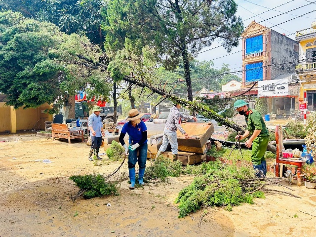 Cán bộ, chiến sĩ, đoàn viên, thanh niên, cùng các lực lượng dân quân, công an, bộ đội đã giúp Nhân dân dọn dẹp nhà cửa, nạo vét bùn đất, khôi phục đường giao thông, trường học, trạm y tế, đồng thời thăm hỏi, động viên các gia đình bị thiệt hại.