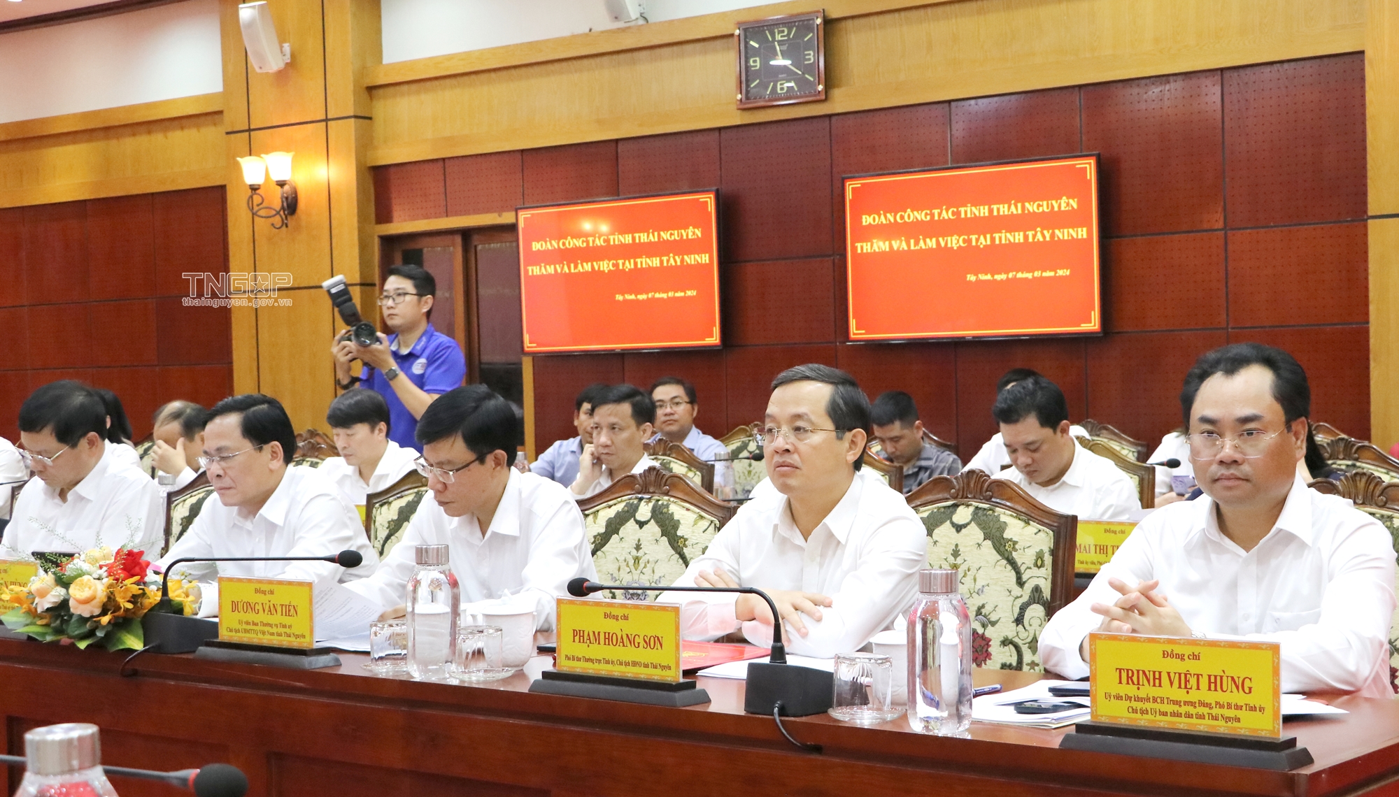 Tây Ninh là tỉnh có truyền thống lịch sử văn hoá lâu đời, có truyền thống cách mạng bất khuất, kiên cường, đồng thời là địa phương có nền kinh tế phát triển năng động, là cửa ngõ thương mại quốc tế của vùng Đông Nam Bộ và cả nước. Trong những năm qua, với vị trí nằm trong địa bàn kinh tế trọng điểm của khu vực phía Nam, gần TP. Hồ Chí Minh và Bình Dương, tỉnh Tây Ninh duy trì đà tăng trưởng tích cực, cao hơn bình quân cả nước, cùng với nhiều thành tựu trong công tác xây dựng Đảng, xây dựng hệ thống chính trị, phát triển kinh tế - xã hội. Nhân dịp này, người đứng đầu tỉnh Tây Ninh đã chia sẻ với Đoàn công tác tỉnh Thái Nguyên kinh nghiệm của địa phương trong đẩy mạnh kết nối vùng phát triển kinh tế - xã hội, tổ chức các hoạt động quảng bá, xúc tiến, từng bước khẳng định chất lượng, thương hiệu của du lịch Tây Ninh….