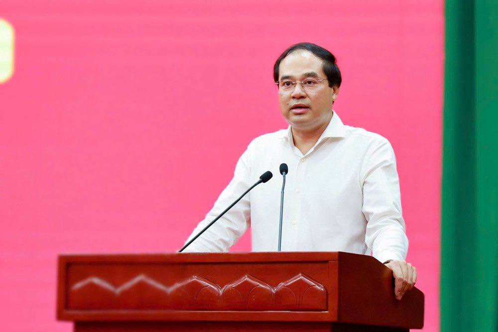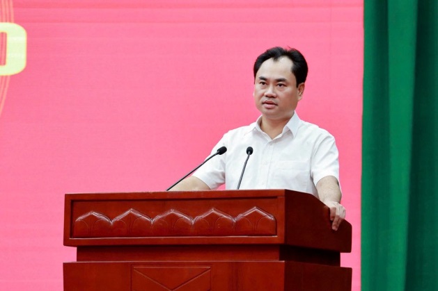 Đồng chí Bí thư Tỉnh ủy, Chủ tịch HĐND tỉnh Lào Cai Trịnh Việt Hùng phát biểu tại buổi làm việc