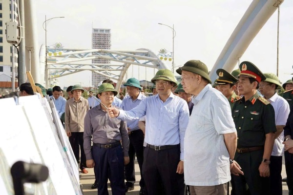 Tổng Bí thư thị sát công tác khắc phục hậu quả mưa lũ tại khu vực cầu Bến Tượng