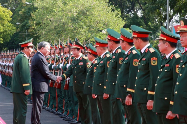 Lễ đón Tổng Bí thư Tô Lâm, Bí thư Quân ủy Trung ương tại Bộ Tư lệnh Quân khu 1