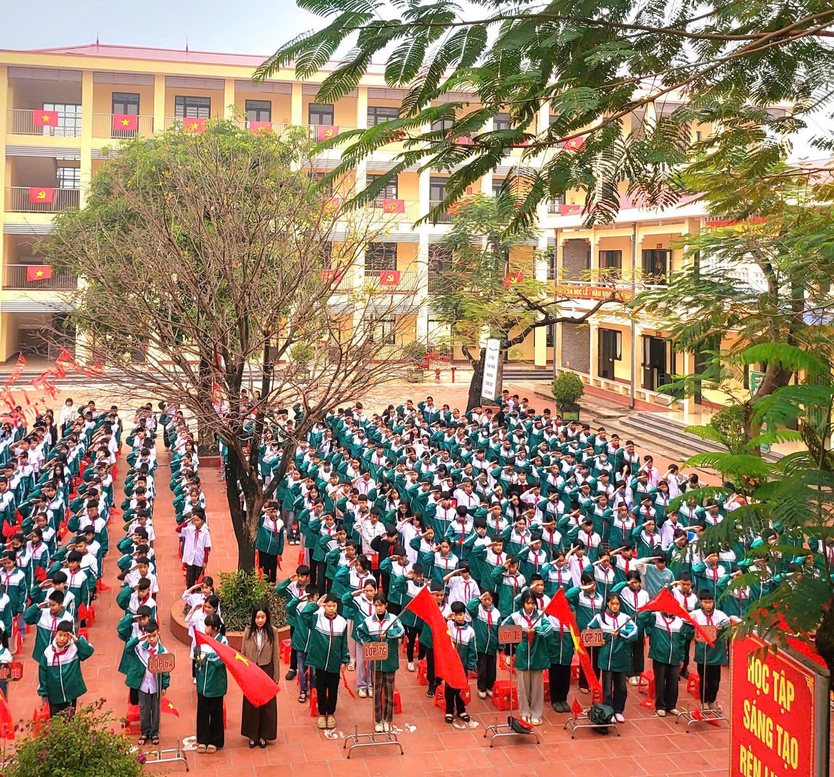 Trước đó, sáng thứ Hai đầu tuần (ngày 19/01), một số trường học trên địa bàn tỉnh tổ chức trang trọng lễ chào cờ chào mừng Đại hội XIV của Đảng.